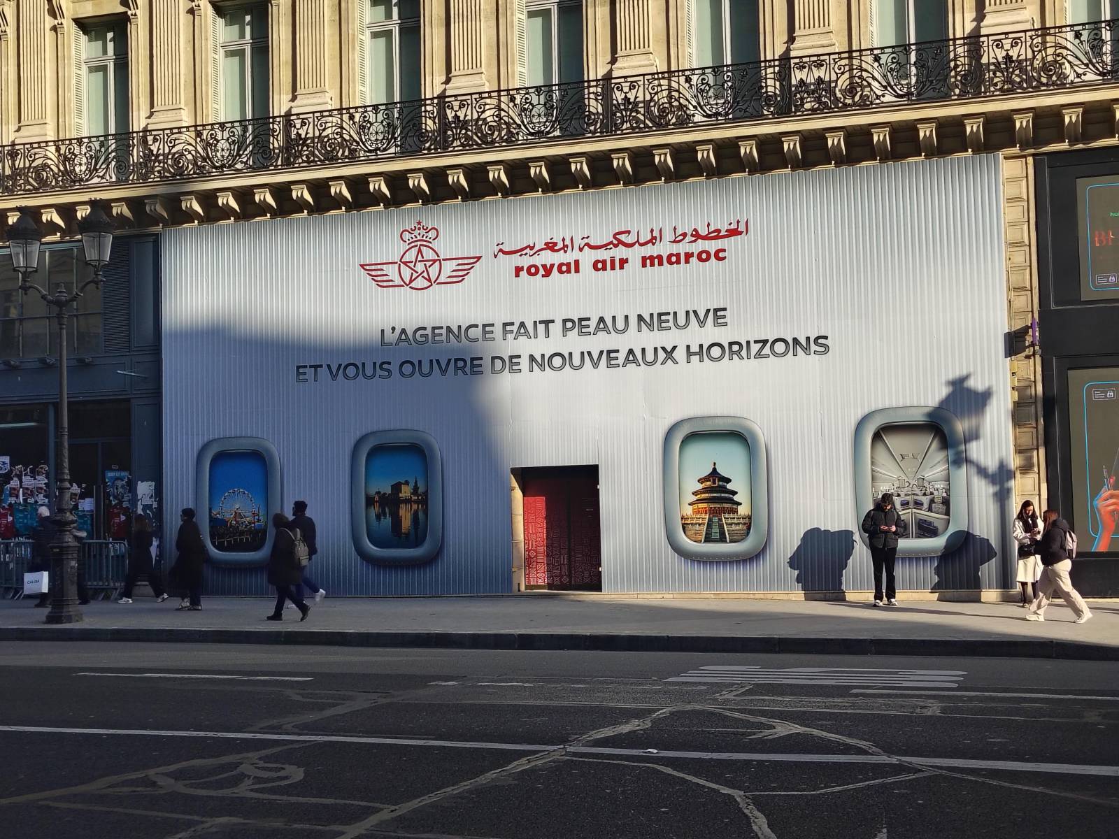 Habillage de façade grand format pour Royal Air Maroc – avenue de l’Opéra, Paris 9
